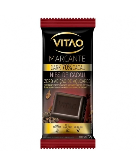 ALIMENTOS>ALIMENTOS>CHOCOLATES - DOCÊS>CHOCOLATE MARCANTE NIBS 70% ZERO 6 X 70G - VITAO 19994