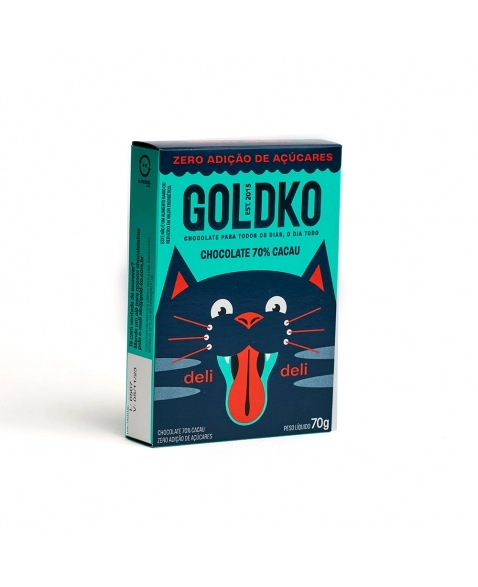 ALIMENTOS>ALIMENTOS>CHOCOLATES - DOCÊS>DELI CHOCOLATE 70% CACAU ZERO AÇUCAR 70G GOLD & KO - 819