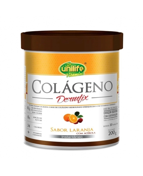 SUPLEMENTOS>VITAMINAS E SUPLEMENTOS>COLAGENO>COLAGENO DERMFIX HIDR.EM PÓ LARANJA C/ACEROLA 200G -UNILIFE