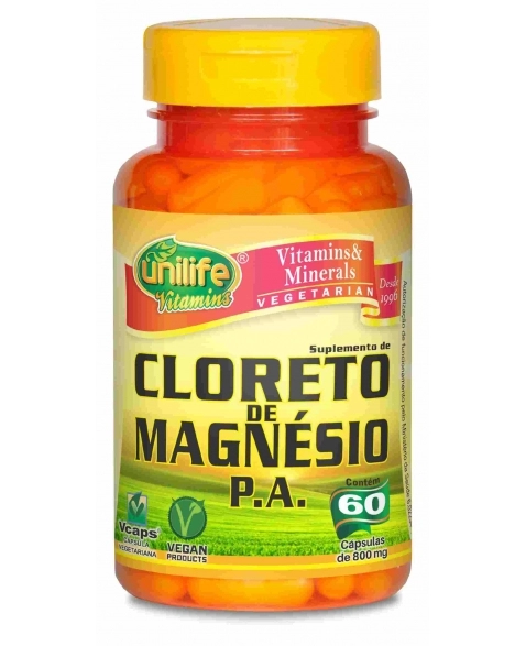 SUPLEMENTOS>VITAMINAS E SUPLEMENTOS>MINERAIS>CLORETO DE MAGNESIO PA 800MG - 60 CAPS - UNILIFE
