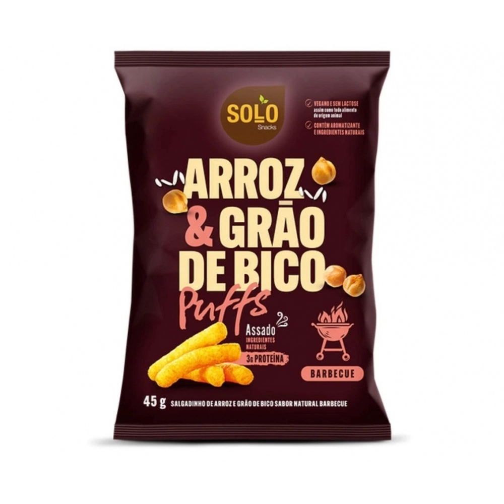 ALIMENTOS>ALIMENTOS>SNACKS SAUDAVEIS>SNACK PUFFS ARROZ & GRÃO DE BICO BARBECUE 45G - SOLO