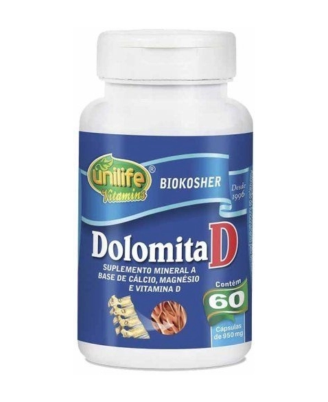 SUPLEMENTOS>VITAMINAS E SUPLEMENTOS>SUPLEMENTOS ALIMENTARES>DOLOMITA \'D\' 950MG - 60CAPS - UNILIFE