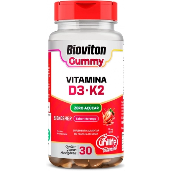 SUPLEMENTOS>VITAMINAS E SUPLEMENTOS>VITAMINAS>GUMMY VIT D3 + VIT K2 BIOVITON - SABOR MORANGO - 30 GOMAS - UNILIFE