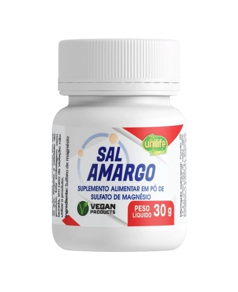 SUPLEMENTOS>VITAMINAS E SUPLEMENTOS>VITAMINAS>SAL AMARGO EM PO 30GR UNILIFE